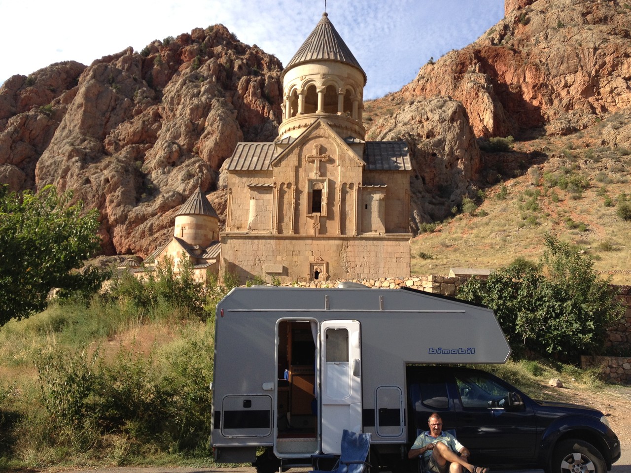 Wir schlafen hervorragend und freuen uns auf die Fahrt ganz in den Süden von Armenien an die iranische Grenze. Mit uns fahren viele Iranische Tankfahrzeuge. Armenien erhält Benzin und Diesel vom Iran und deshalb müssen alle Fahrzeuge den gleichen Weg über Strassen die nicht immer gut sind und über mehrere Pässe fahren. Die Fahrzeuge sind alle alt und "keuchen" entsprechend die Berge hoch. Zudem sehen wir viele iranische Fahrzeuge mit Touristen.