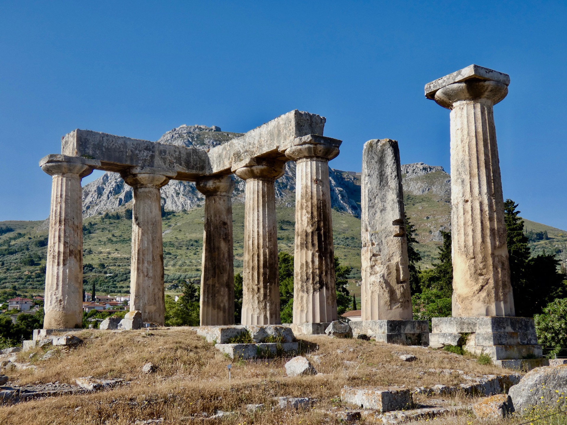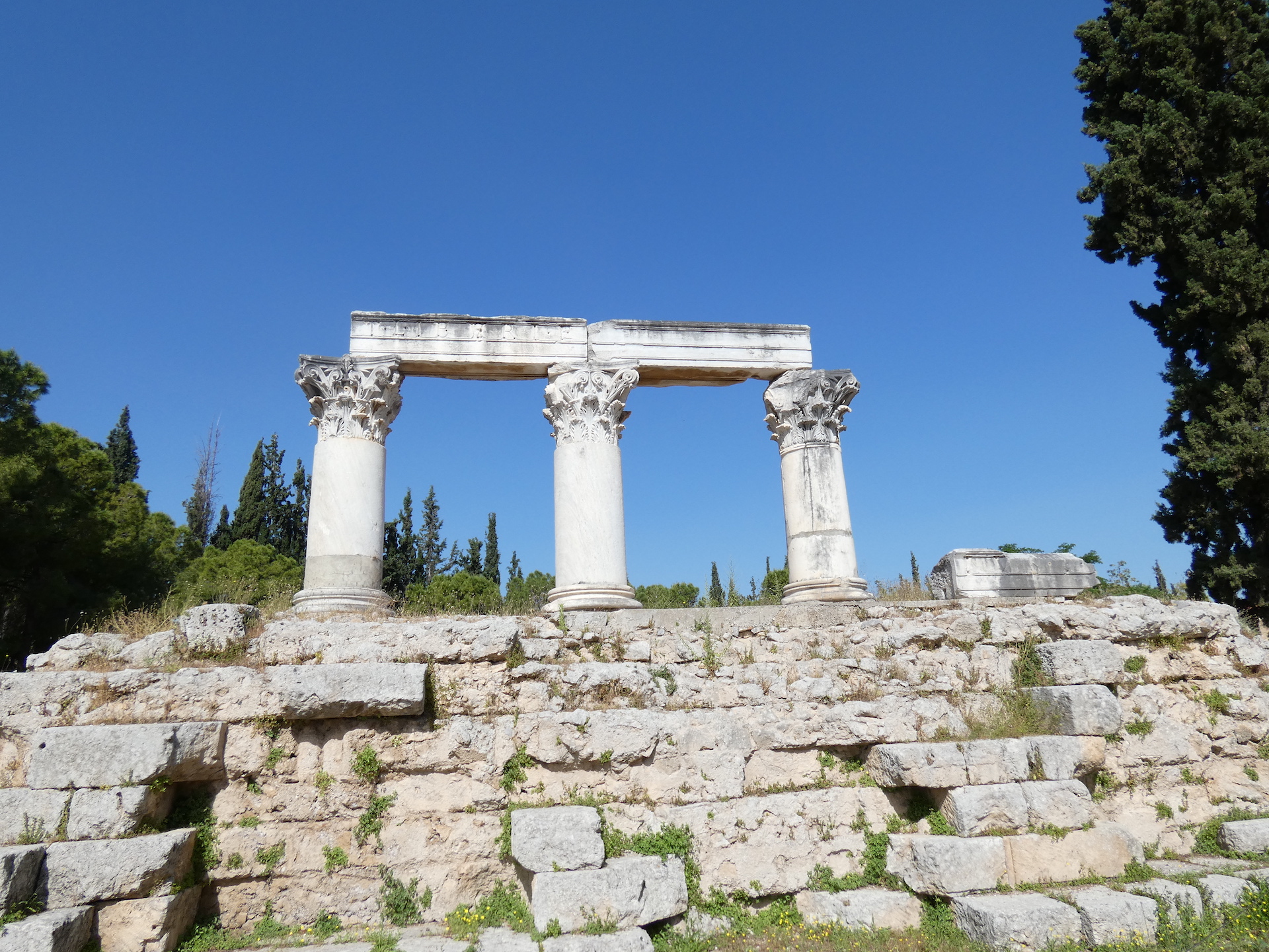 Von hier aus spazieren wir früh am Morgen zu der Ausgrabungsstätte vom alten Korinth. Der eindrücklichste Tempel ist der Apollotempel, erbaut von den Griechen 500 v.Chr. Von seinen 38 Kalksteinsäulen wurden nach einem zerstörerischen Erdbeben sieben wieder aufgerichtet. Daneben steht das baufällige Quellhaus, das nach einer Sage den Namen Glauke bekam. Glauke, König Kreons Tocher versuchte der zauberkundigen Medea den Mann auszuspannen, worauf diese ihr ein teuflisches Brautkleid verschenkte. Dieses ging nach der Anprobe in Flammen auf und Glauke stürzte sich (zu spät) in diese Quelle. Das Museum im Gelände ist sehr schön und wir staunen über die vielen gut erhaltenen Objekte die man an diesem Ort gefunden hat. Vieles ist aus der römischen Zeit. Die Römer haben diesen Ort übernommen und zu einer grossen Stadt ausgebaut. Hier erfahren wir auch, dass Paulus auf einer seiner Reisen hier in Korinth war, arbeitete und predigte. An seine Freunde gingen später während seinen weiteren Reisen die Korintherbriefe, die man im neuen Testament findet. Deshalb wird jedes Jahr am Paulustag in den Ruinen eine Messe abgehalten.